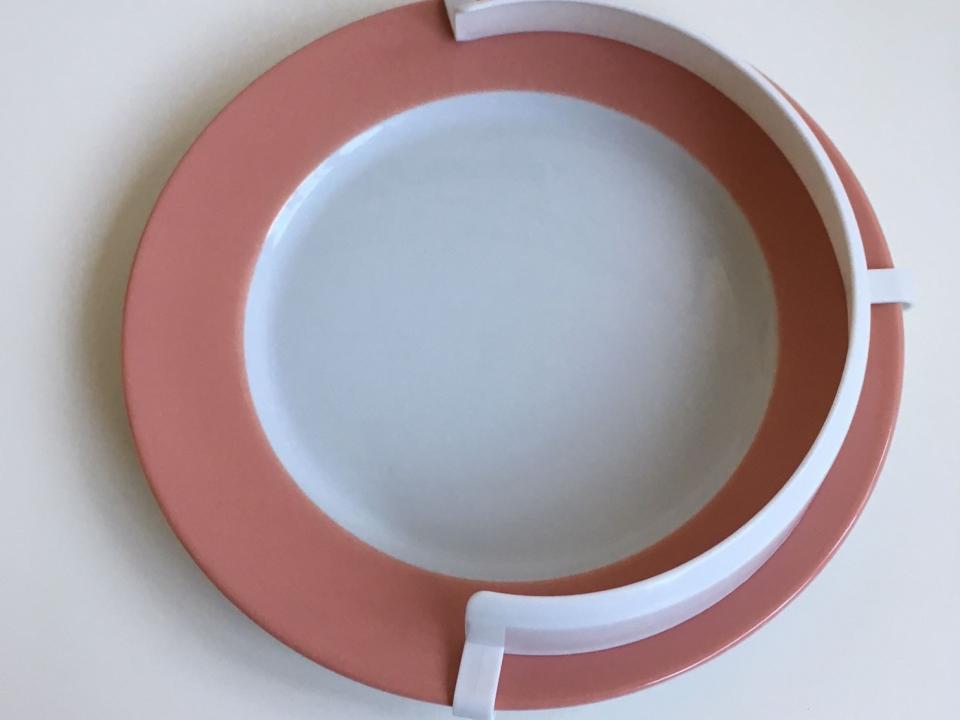 Durch die Form dieses Tellerrandes ist es besonders einfach, das Essen auf das Besteck zu bekommen. Er erhöht den Tellerrand um 3,2 cm. Spülmaschinenfest.