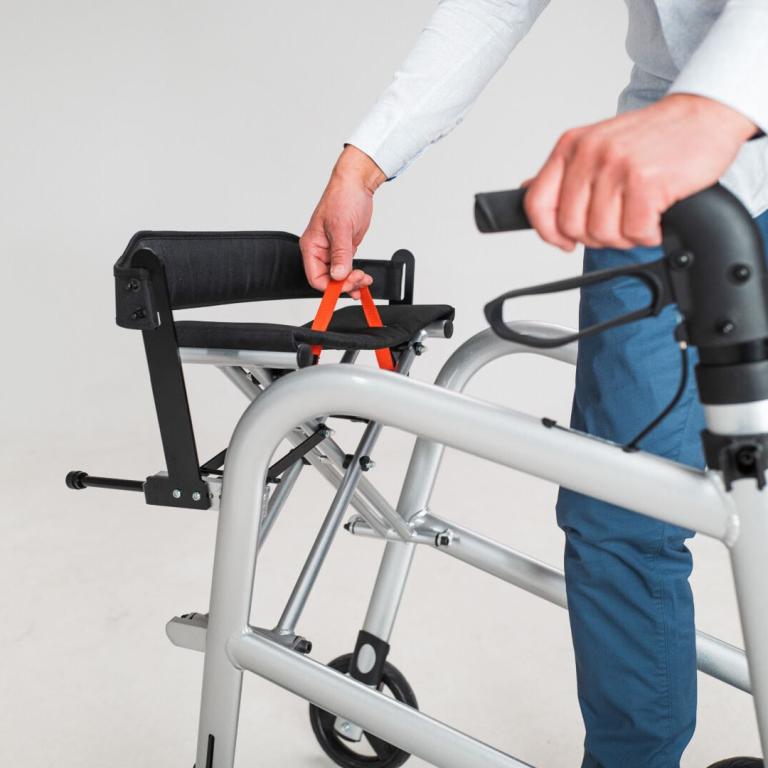 Jederzeit sicher Absetzen und Aufstehen, denn die Laufrichtung ist auch Sitzrichtung