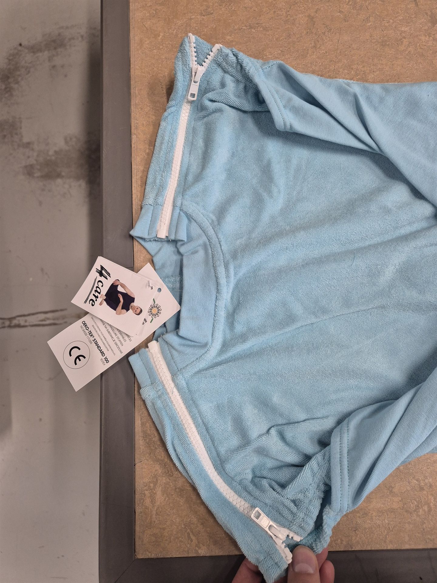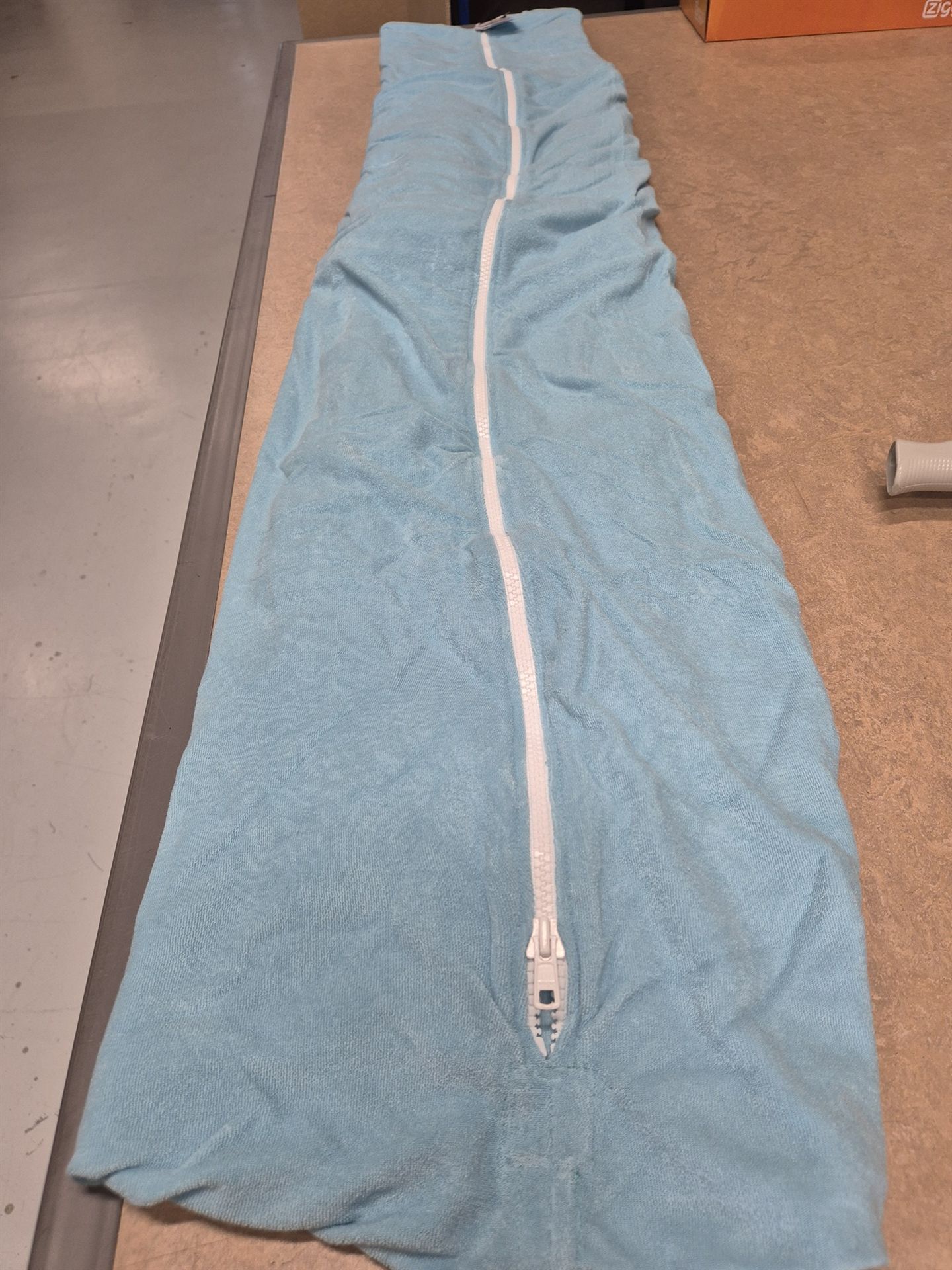 Reissverschlüsse an den Schultern erleichtern die Pflege beim Aufstehen oder zu Bett gehen. Der lange Reissverschluss vorne macht es praktisch unmöglich, die Pflegedecke selbständig zu öffnen.