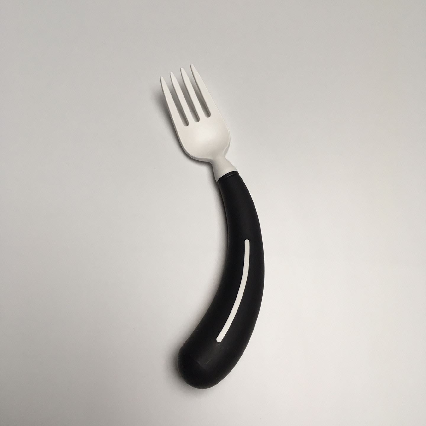 Diese Gabel mit dem grauen Griff ist für Erwachsene geeignet.