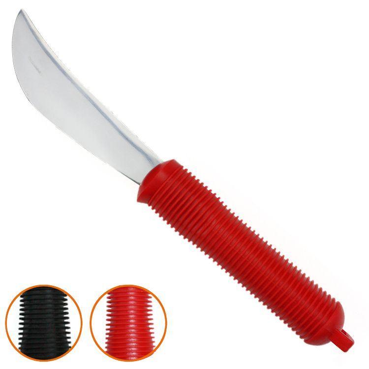 Der rutschfeste Lamellen-Griffbietet sicheren Halt in der Hand. Bei eingeschränkter Handbeweglichkeit ist der extra dicke Griff besonders angenehm, da die Hand nicht so weit geschlossen werden muss, wie bei üblichem Besteck.