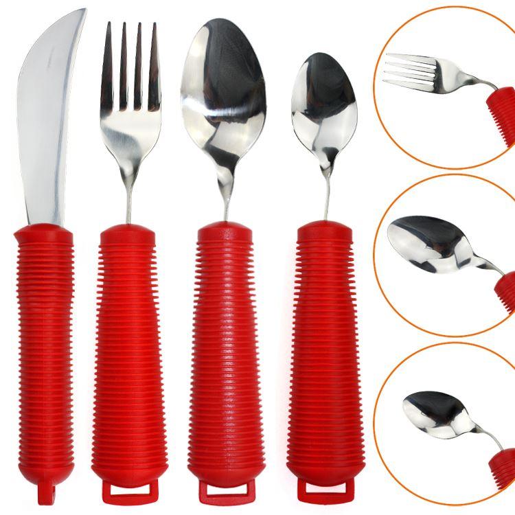 Das Besteck Flexy-Grip mit extra dickem Griff eignet sich mit seiner auffälligen roten Farbe ideal als Demenz-Besteck. Auch für Personen mit Rheuma, Arthrose, eingeschränkter Handbeweglichkeit, Parkinson oder Schlaganfall-Patienten ist das Besteck-Set eine Hilfe beim selbstständigen Essen.
