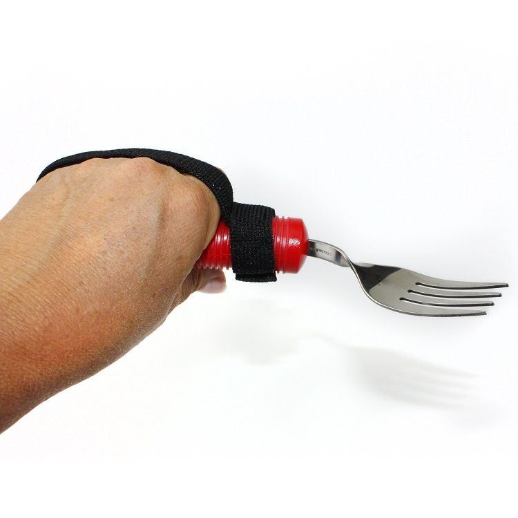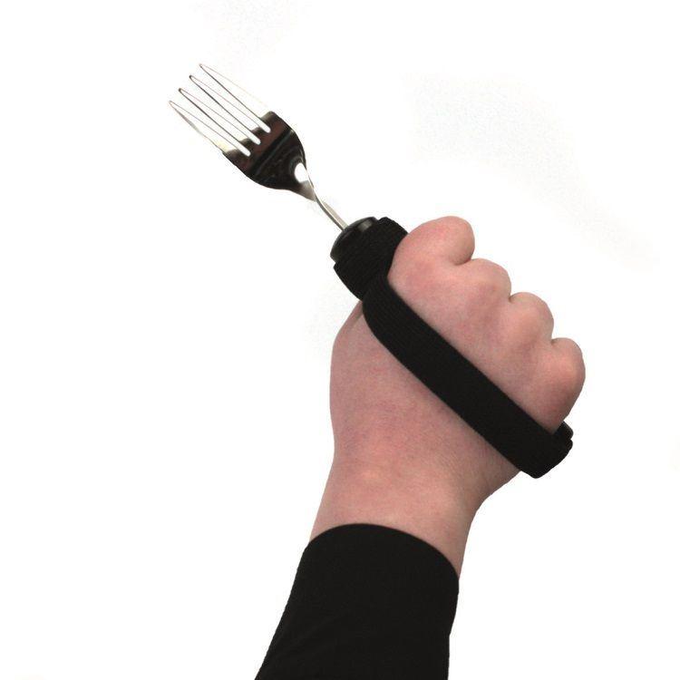 Toller Besteckhalter, speziell für das Besteck "Flexy-Grip" geeignet. Das elastische Band wird mit einem Klettband um das Vorderteil des Griffes geschlossen und am hinteren Ende durch die "Öse" gezogen. Die Größe der Schlaufe lässt sich durch ein Klettband jeder Handgröße perfekt anpassen. Der elastische Stoff sorgt für einen angenehmen, sicheren Halt an der Hand.