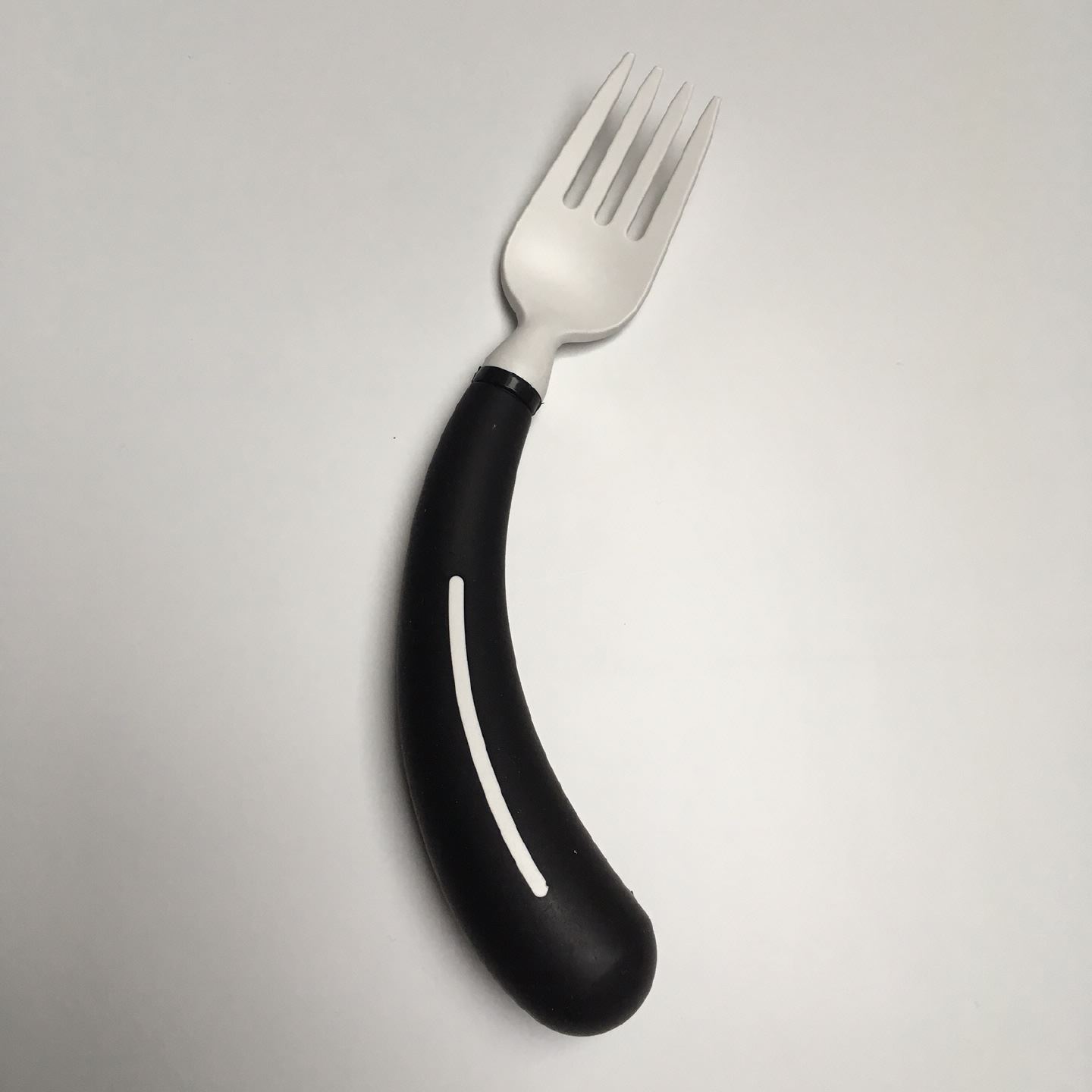 Diese Gabel mit dem grauen Griff ist für Erwachsene geeignet.