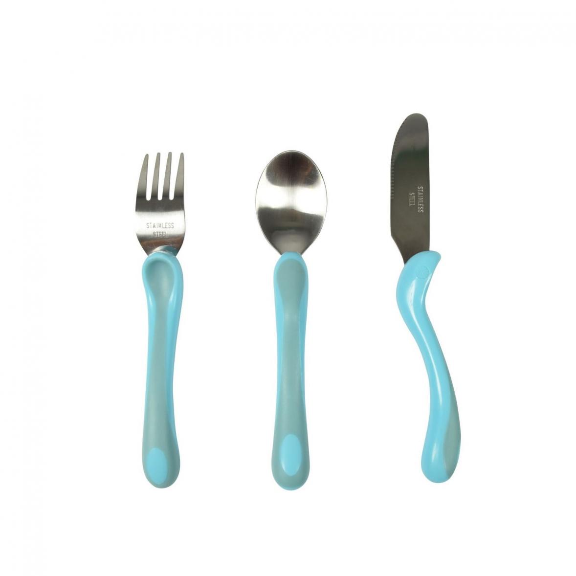 Dieses Essbesteck hat speziell für Kinderhände geformte Griffe mit einer rutschfesten Beschichtung. So haben Kinder beim Erlernen des selbständigen Essens eine gute Trainingsmöglichkeit. Durch die Aussparung an der Griff Unterseite lässt sich der Löffel gut am Tellerrand ablegen, ohne dass das Besteck verrutscht.