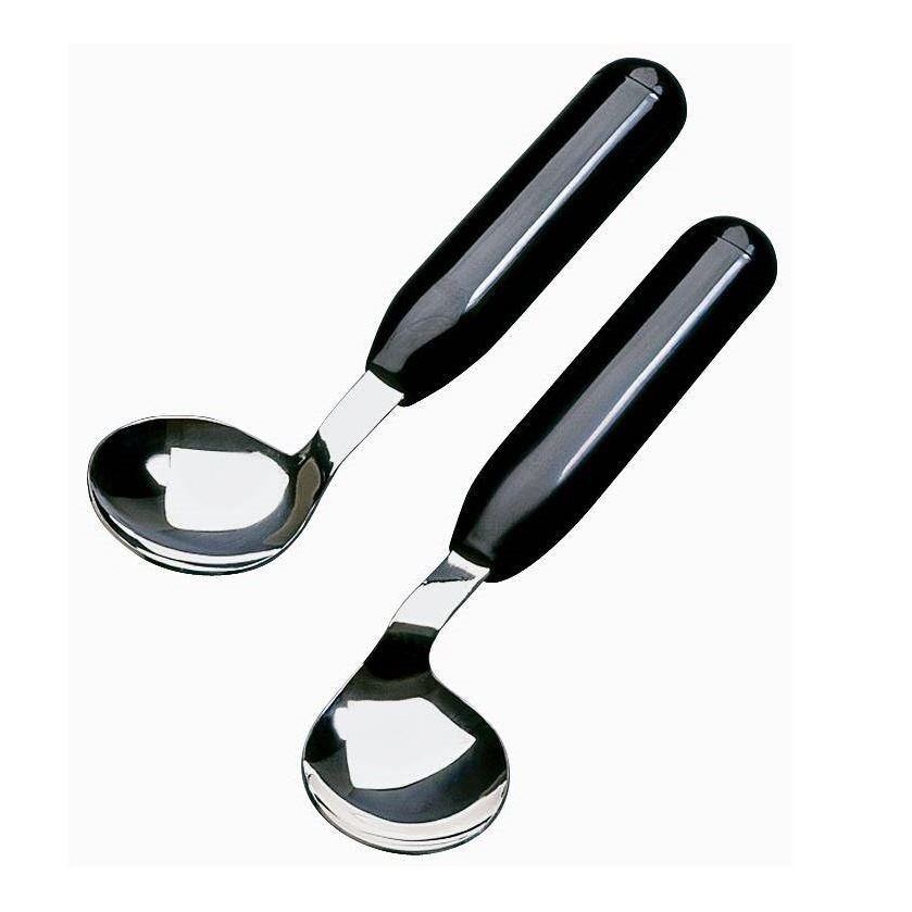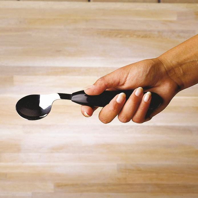 Der Löffel abgewinkelt - ETAC ist speziell für Personen mit ein geschränkter Beweglichkeit in den Händen und Armen gedacht. Er ist in Links- und Rechtshänder Ausführung lieferbar. Die Essteile bestehen aus Edelstahl, der Griff aus ABS-Kunststoff, beides ist spülmaschinengeeignet. Länge und Gewicht betragen jeweils 19 cm und 35 g.