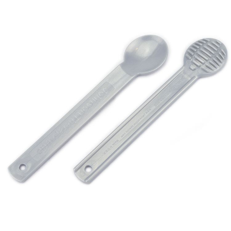 Die Besonderheit dieses Anreichlöffels: Die Unterseite ist mit einer Gitterstruktur versehen, die für eine oral-sensorische Stimulation beim Schluckvorgang sorgen.