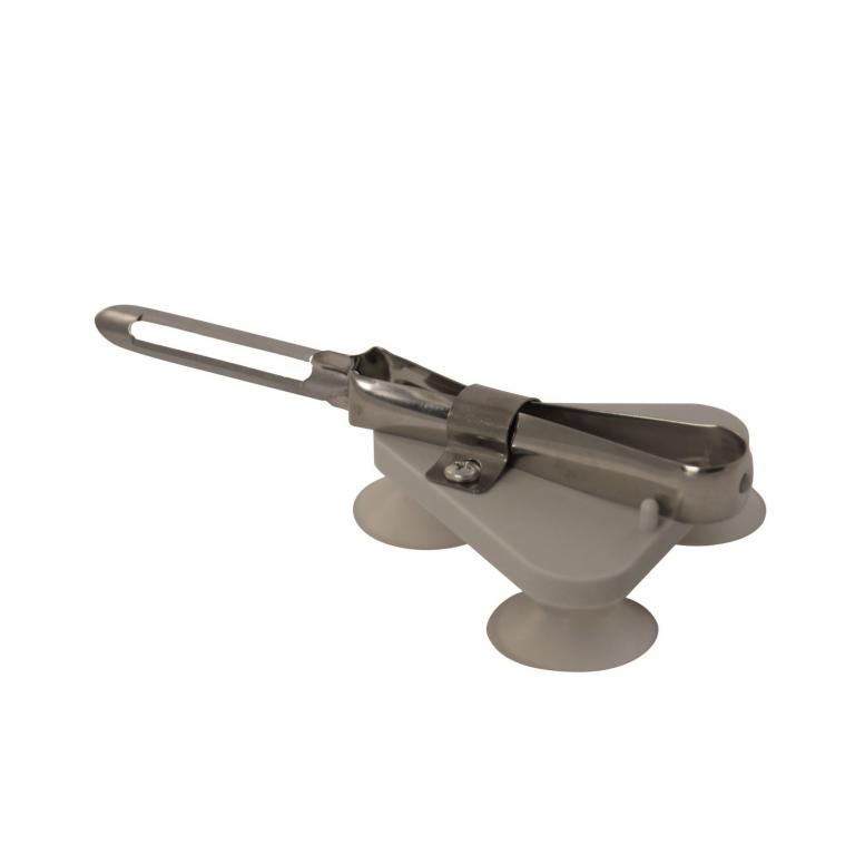 wird von drei Saugnäpfen auf der Tischplatte gehalten
