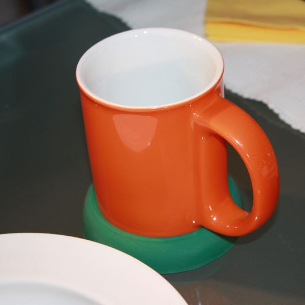 Ein Untersatz, damit die Tasse auf glatten Oberfächen nicht rutschen kann.
