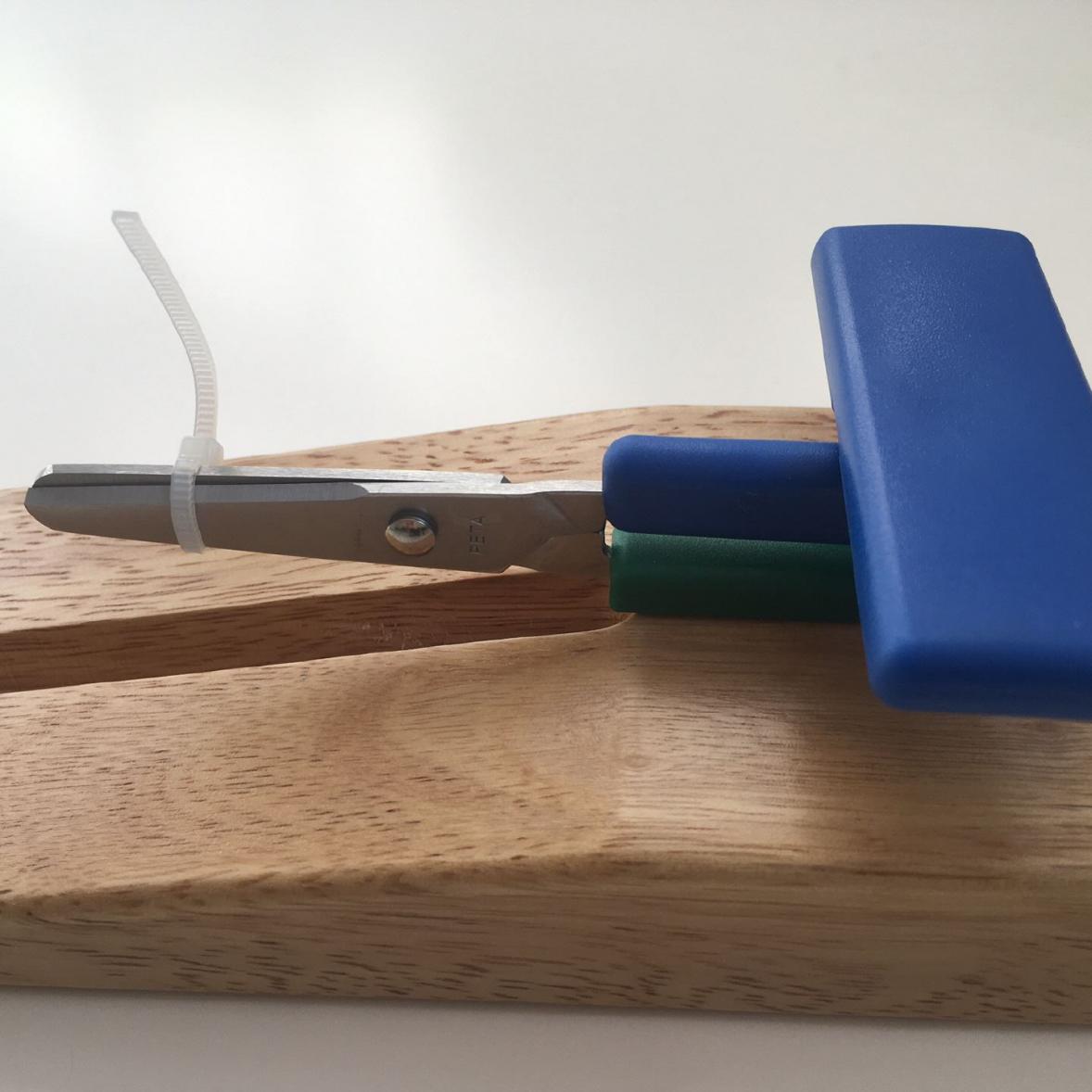 Durch den stabilen Stand auf dem Tisch ist das schneiden ein Vergnügen. Der grosse Griff sorgt für sicheren Halt und lässt sich mit einer Hand bedienen. Der Scherenständer ist aus Massivholz. Durch die Spannfeder öffnet sich die Schere selbständig. Ende der klinge abgerundet. Lange ca. 45mm
