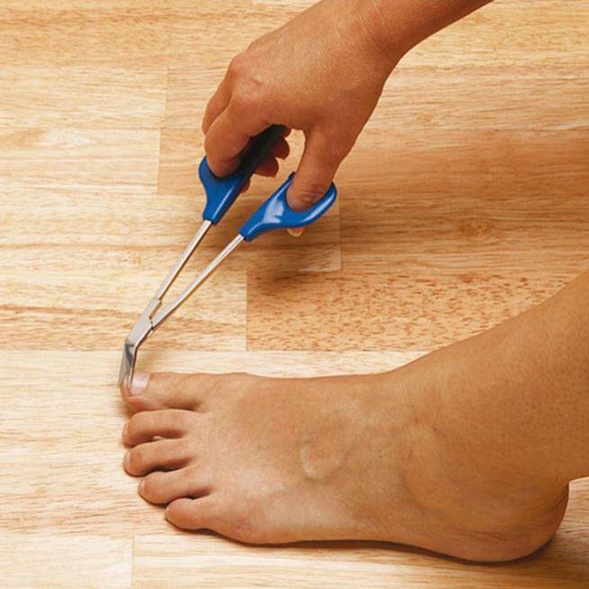 Die optimal geformten Griffe dieser Schere ermöglichen ein problemloses Halten und erleichtern so das Schneiden der Zehnägel. Die starken, abgewinkelten Klingen bestehen aus Edelstahl und schneiden somit auch die kräftigsten Nägel. Durch die Länge der Schere braucht man sich nicht so tief zu bücken.