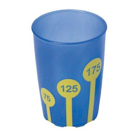 Funktionaler Becher mit spezieller Aussenstruktur und praktischer Skala zur einfachen Inhaltskontrolle.