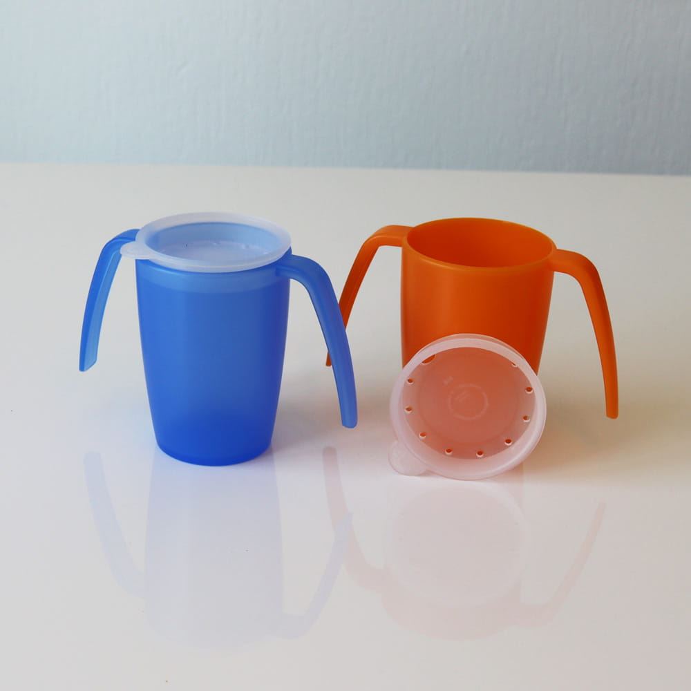 Das Set besteht aus den - auch separat erhältlichen - Komponenten 2-Henkel-Becher 220 ml (Modell 816) und Trinkdeckel, rundum gehende Öffnungen (Modell 814). Der ORNAMIN Becher kombiniert sicheren Halt mit einer unauffälligen Trinkhilfe, die Verschlucken oder Überschwappen vermeidet. Beide Teile sind spülmaschinenfest und mikrowellengeeignet.