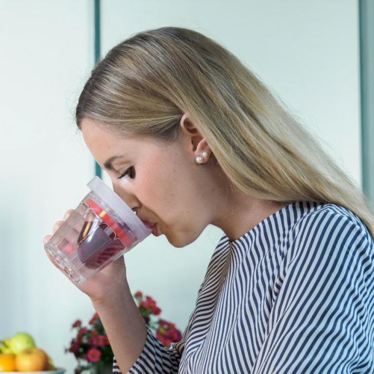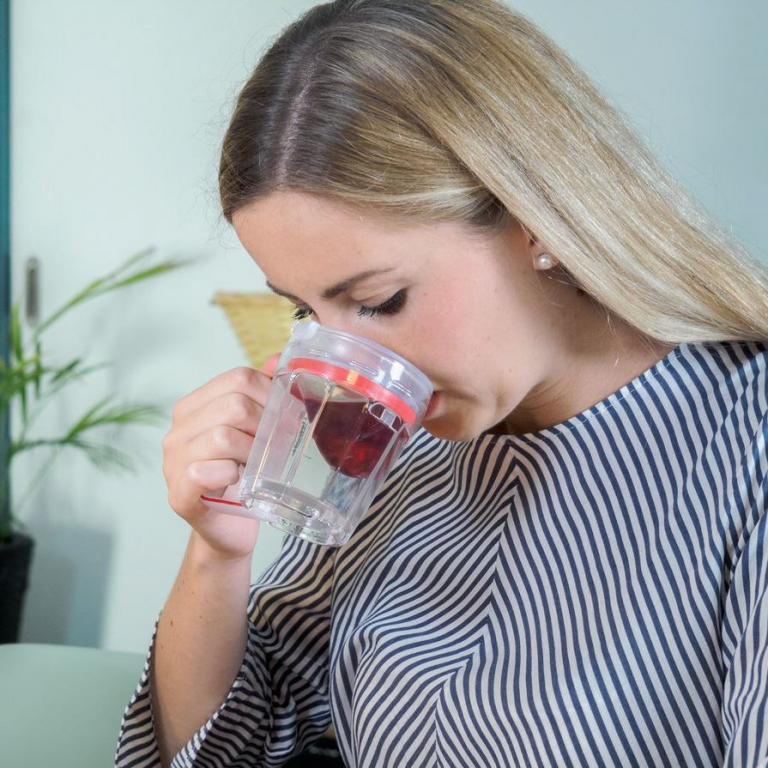 Kein Verschlucken durch eine sichere Trinkposition mit gesenktem Kinn