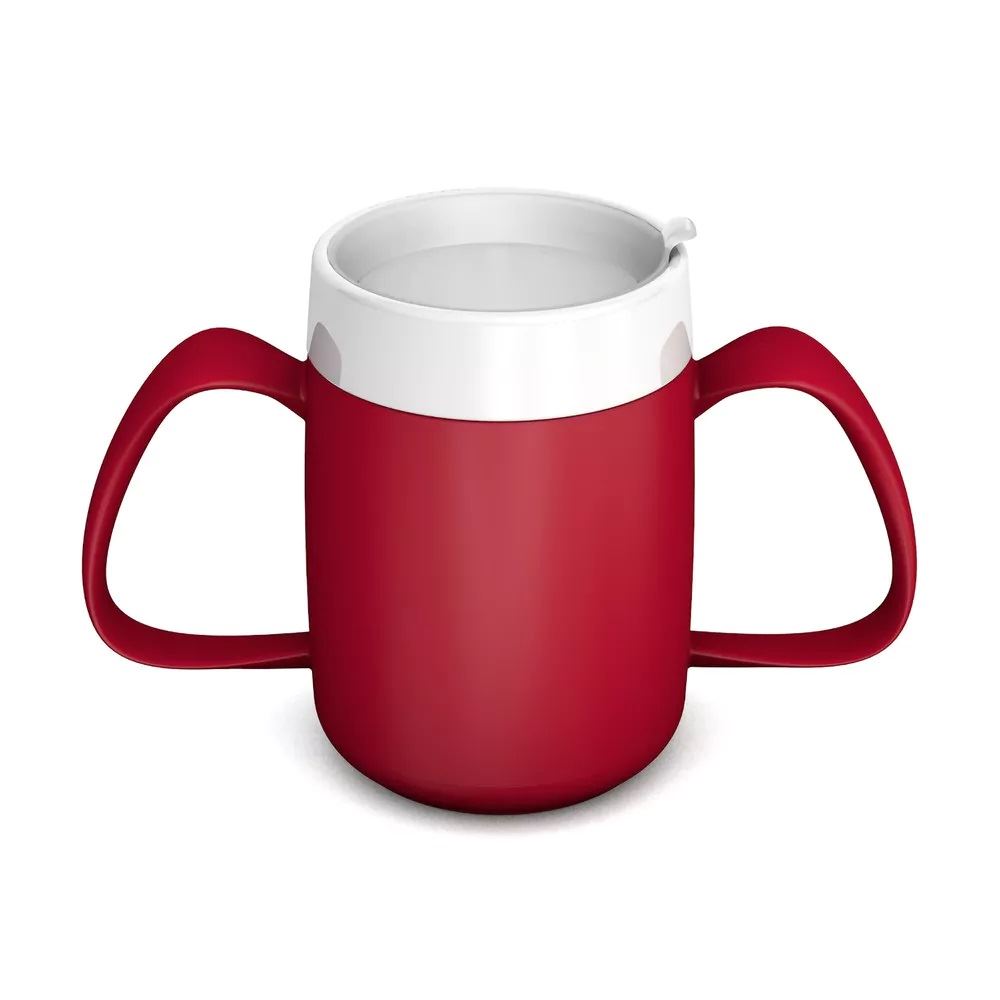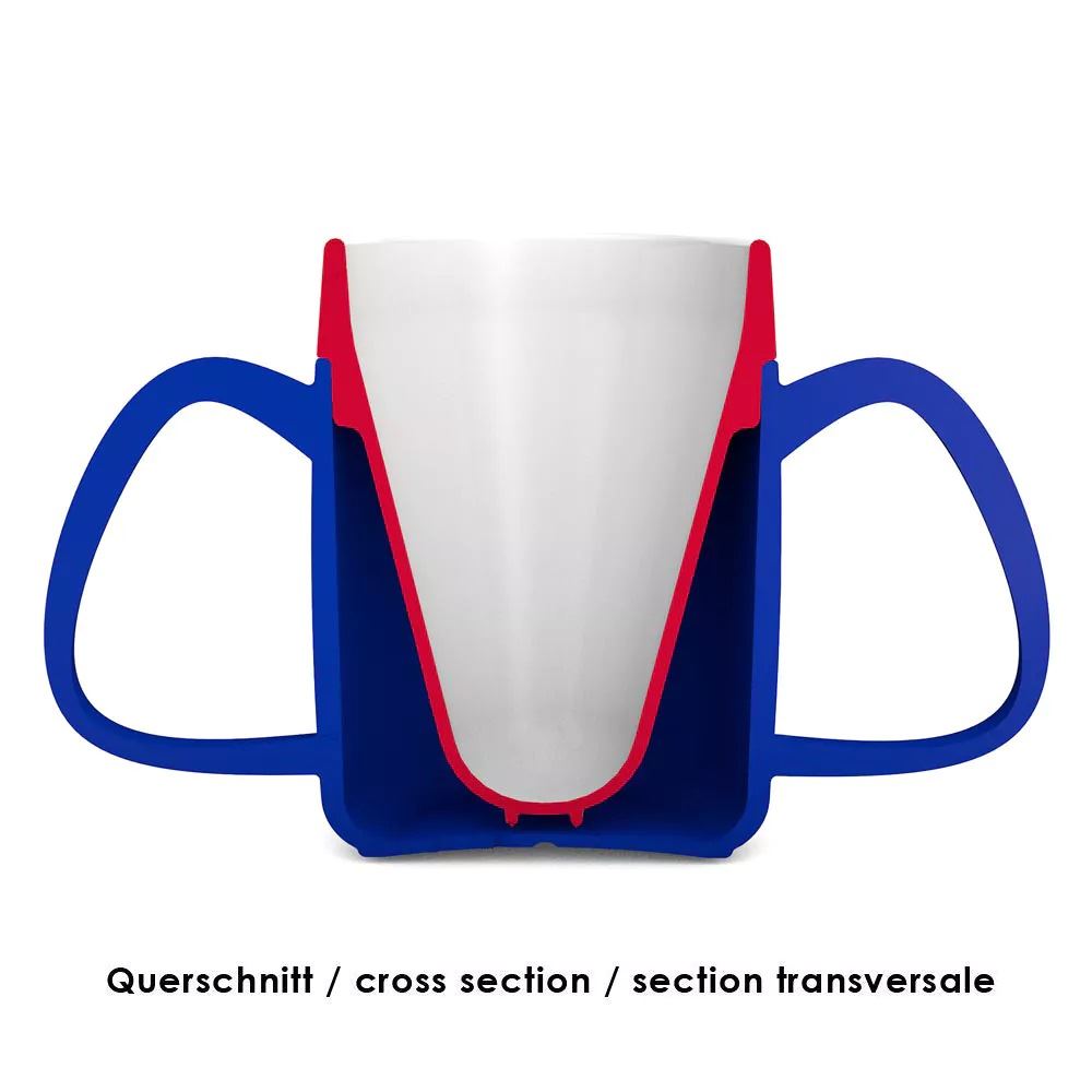 Der 2-Henkel-Becher mit Trink-Trick liegt durch zwei ergonomisch geformte Henkel gut in der Hand, die für sicheren Halt beim Trinken sorgen - auch bei starkem Zittern oder Muskelschwäche. In blau, grün, rot, gelb und brombeer verbreitet der Henkelbecher gute Laune im Alltag und macht das Leben in Pflegeeinrichtungen oder Krankenhäusern und Zuhause bunter. Doppelt gut: Leuchtende Farben regen außerdem zum regelmäßigen Trinken an und sorgen für eine einfache Erkennbarkeit des Bechers. Zusätzlich verhindert der Trinkdeckel das Überschwappen von Flüssigkeiten.