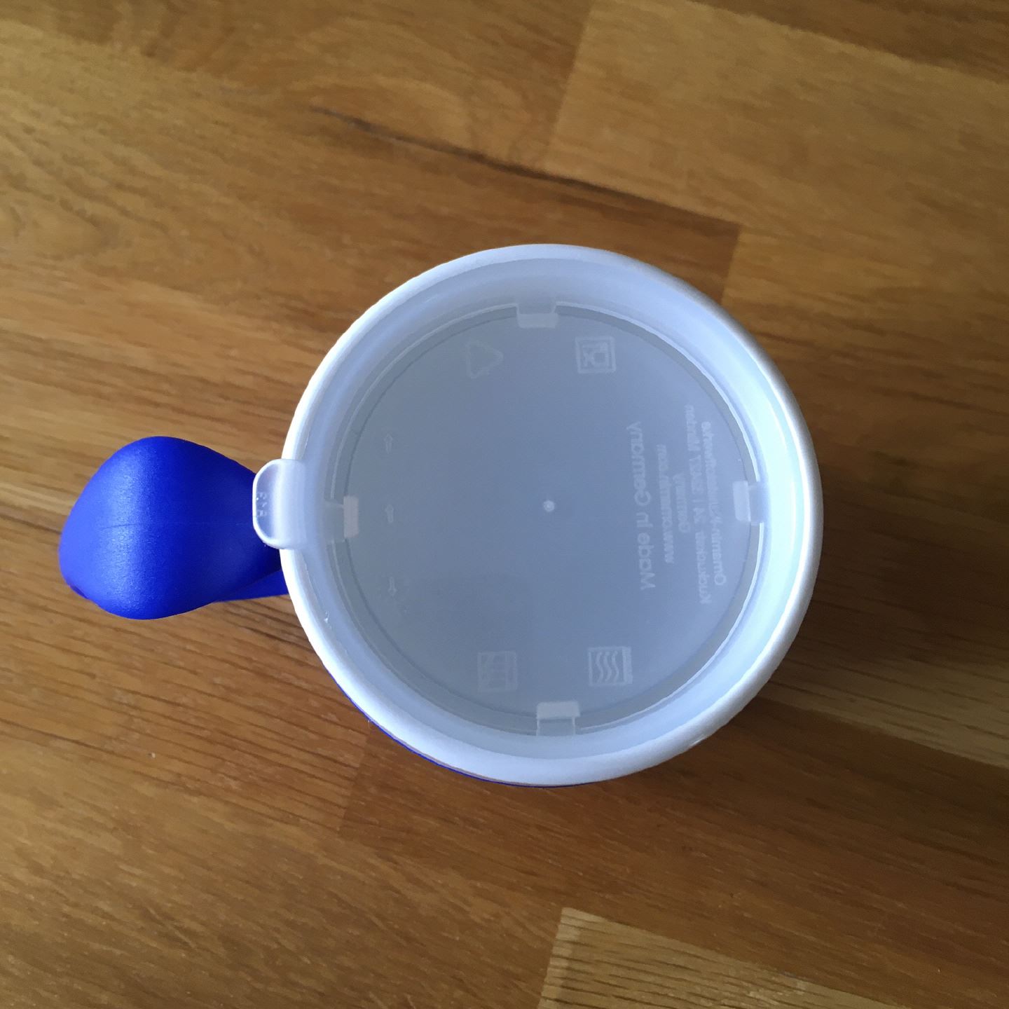 Unauffälliger Spezial-Trinkdeckel (ø 70 mm), der dezent im Becher verschwindet mit rundum gehenden Schlitzen