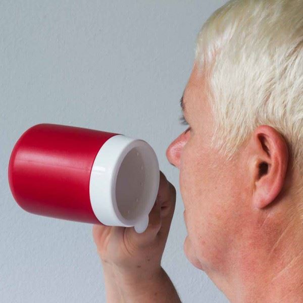 Becher mit Trink-Trick V rot mit Therapeutischem trinkaufsatz