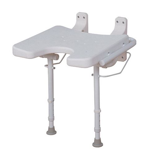 Der höhenverstellbare Duschklappsitz verfügt über einen Rahmen aus Aluminium und einen Sitz aus Kunststoff mit Ablauflöchern. Er ist einfach an der Wand zu installieren. Zur Montage sind 8 Schrauben notwendig (nicht im Lieferumfang enthalten).