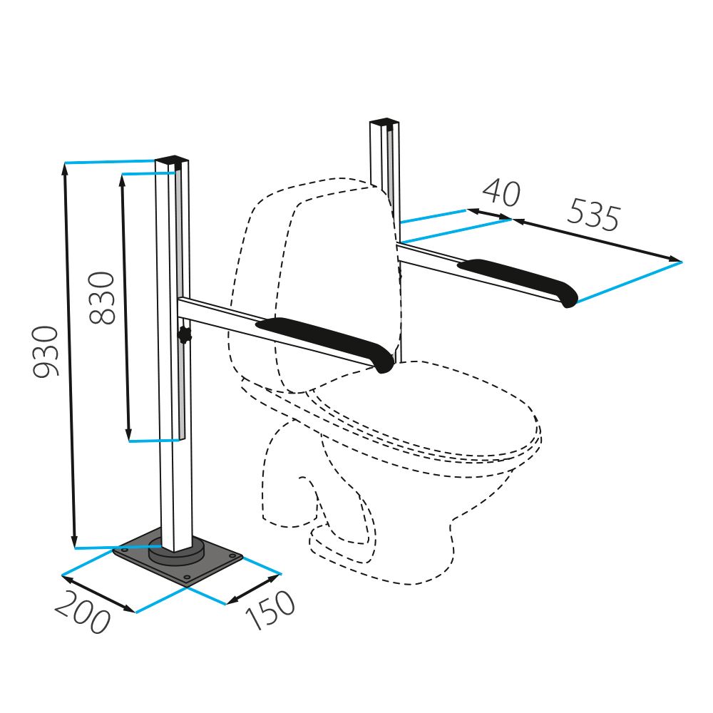 * Armlehnen höhenverstellbar, hochklappbar und arretierbar, seitlich abschw enkbar Toilettenstützgestell, Wandmontageenkbar