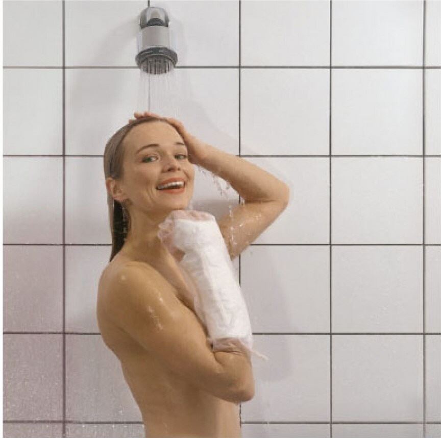 AquaProtect ist ein Schutzüberzug aus hautfreundlichem Polyurethan. Insgesamt sind 8 Modelle für Arme und Beine verfügbar. Die Beinmodelle haben eine rutschfeste Sohle, die für Halt und Sicherheit sorgt. Das Material ist absolut latexfrei, sehr robust und kann viele Male wiederverwendet werden.