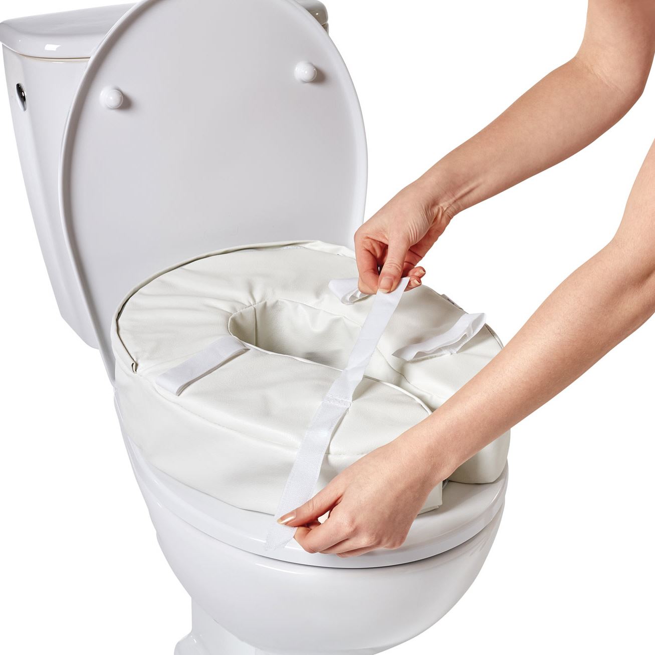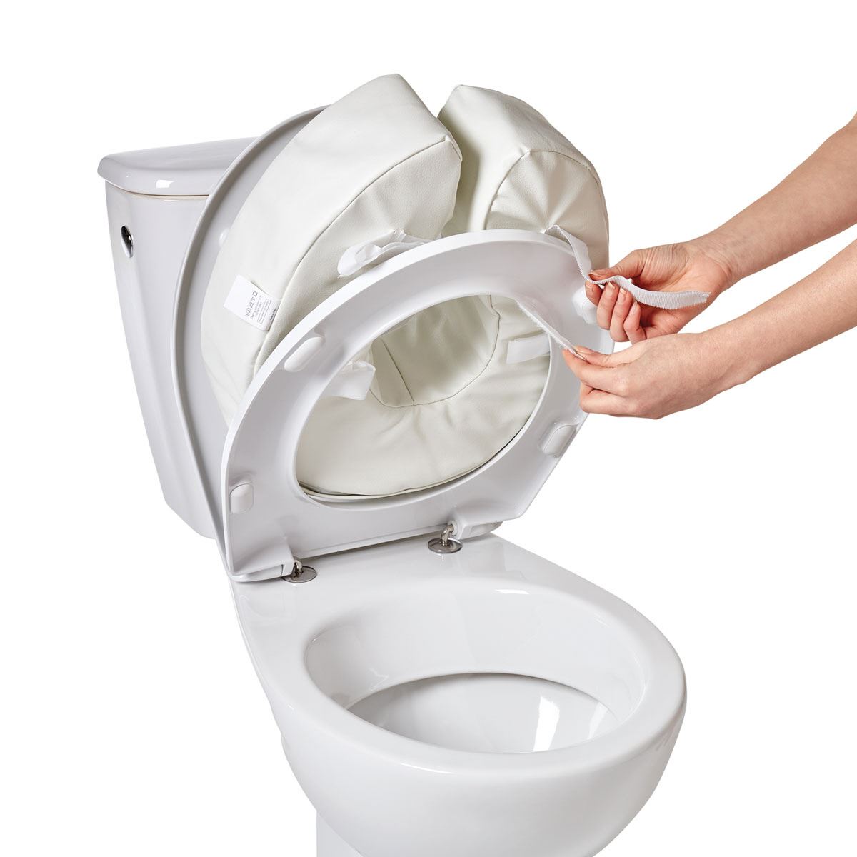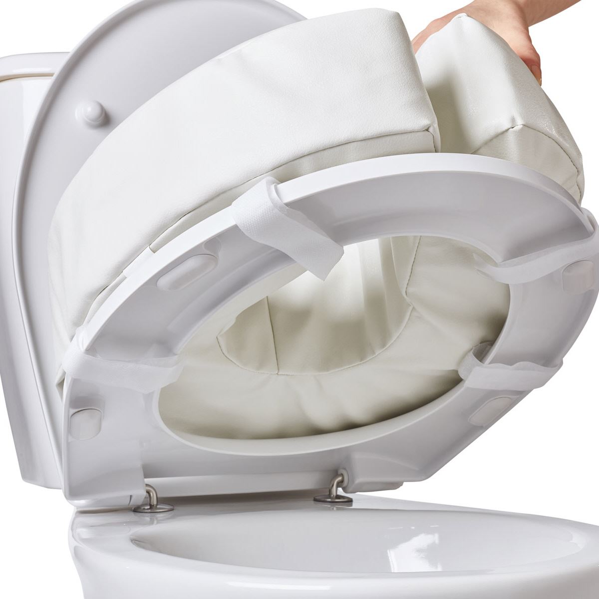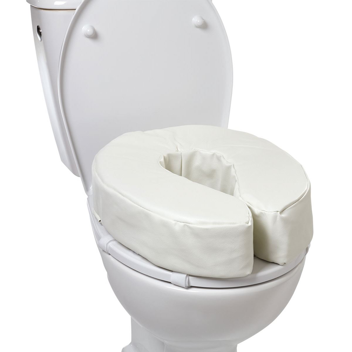 Die Toilettensitzerhöhung besteht aus einem extra weichen Material, dadurch wird das Hinsetzen und Aufstehen besonders für Personen mit schmerzenden Gelenken erleichtert. Der weiche Sitz bietet besonderen Komfort bei längerer Benutzung der Toilette. Ausserdem sorgt die Toilettensitzerhöhung für eine höhere Sitzposition. Die Sitzerhöhung passt auf alle Toiletten und wird mit Hilfe von vier Klettbandverschlüssen sicher an der Toilettenbrille befestigt. Der abnehmbare Überzug ist waschbar.
