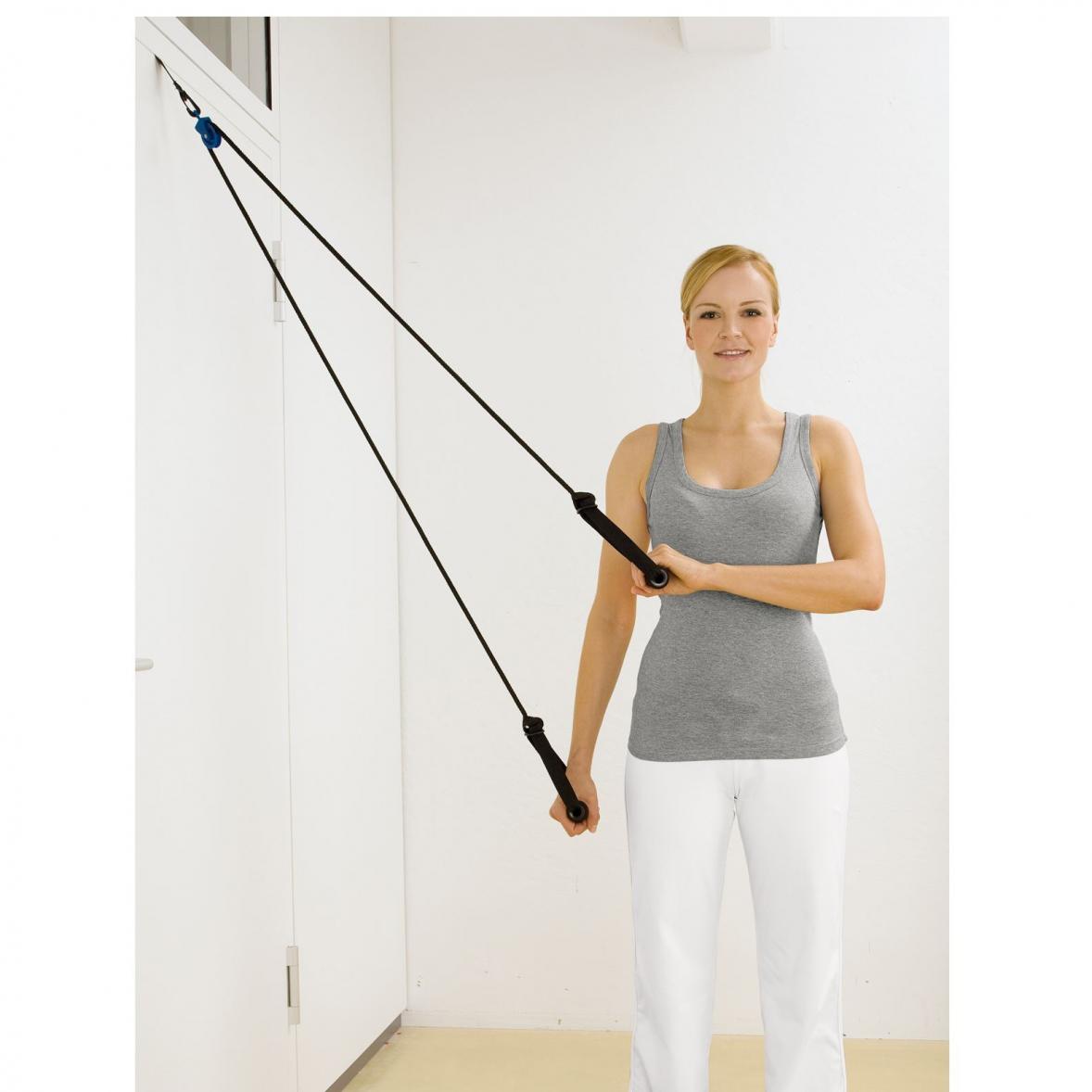 Einfach zu verwendendes und platzsparendes Trainingsgerät für die Schultern. Geeignet zur Verbesserung der Beweglichkeit der Schlittenpartie, zum Beispiel nach eine Verletzung oder Operation und für das tägliche Fitnesstraining. Eine beiliegende Kurbeschreibung enthält Information zu Übung, die mit dem Schulter- und Rückenseilzug durchgeführt werden können.