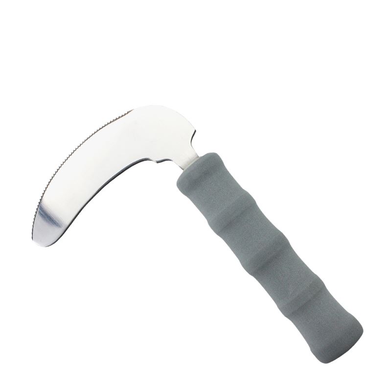Das besonders leichte gebogene Messer eignet sich für Personen mit eingeschränkter Greiffähigkeit und Armkraft, sowie mit Beeinträchtigungen in den Handgelenken, z.B. bei Spastiken. Es erleichtert das Schneiden durch den Schaumstoffgriff mit Fingerkonturen.