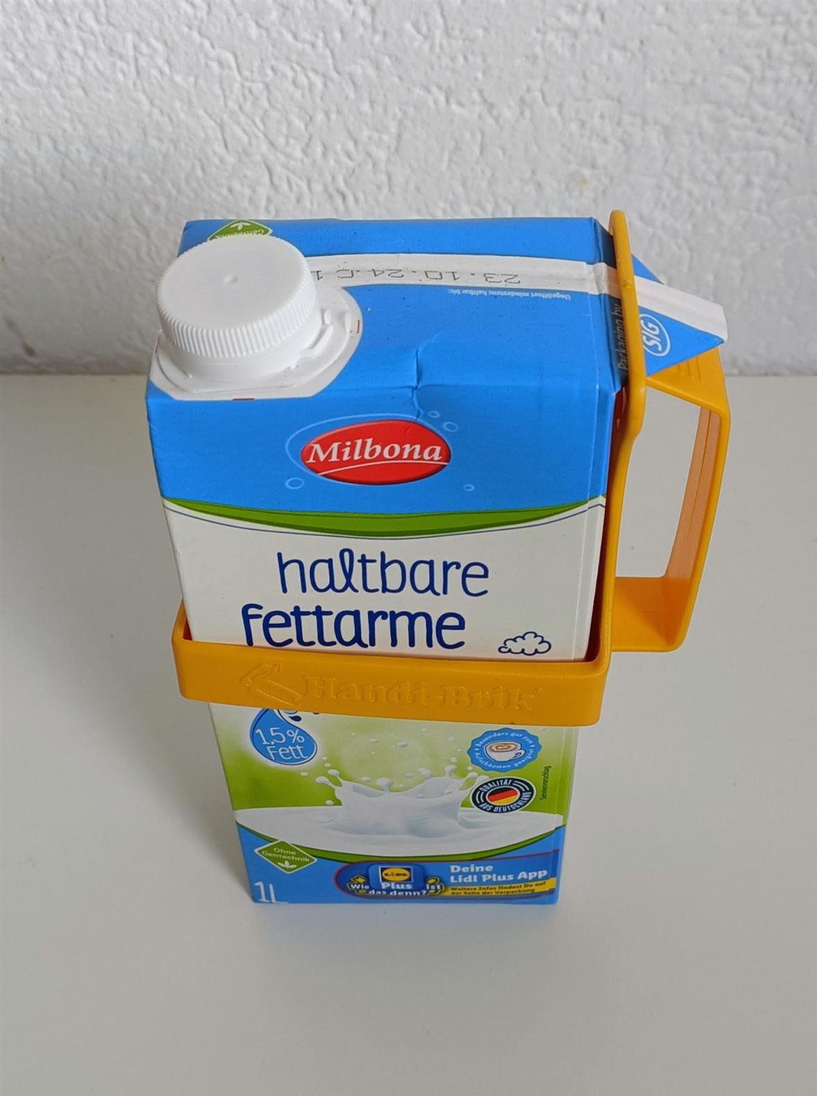 Dieser Greifhilfe für Tetrapack Halter ist für Milch- und Safttetrapacks geeignet. Er erleichtert das Halten des Kartons und das Gießen der Flüssigkeit.