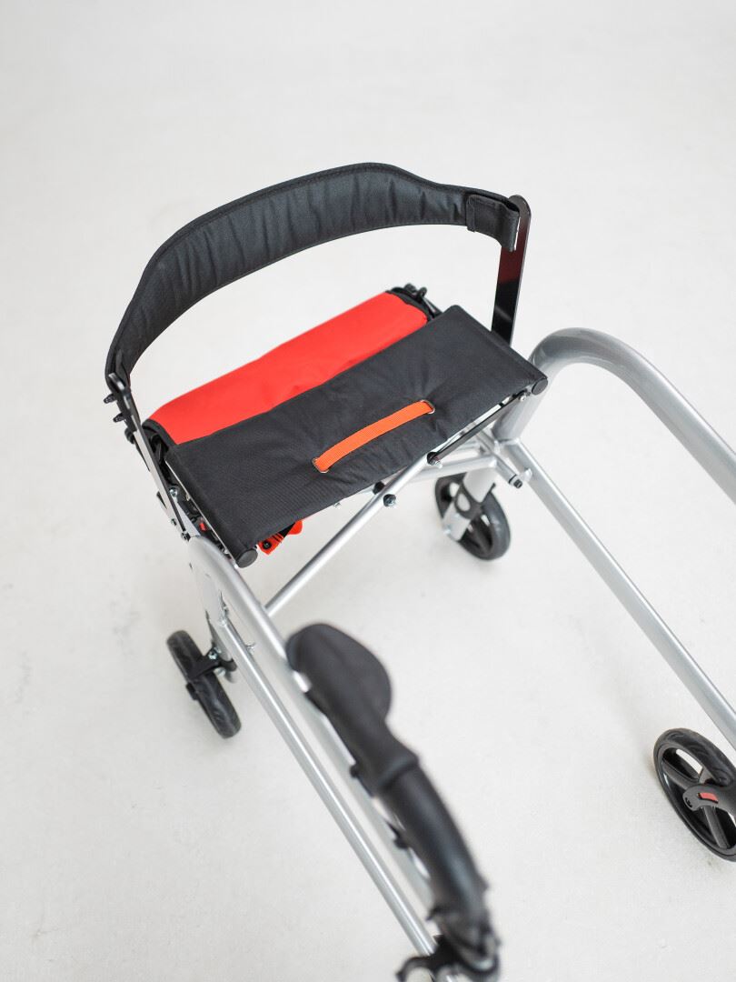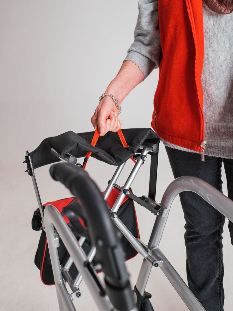 Jederzeit sicher Absetzen und Aufstehen, denn die Laufrichtung ist auch Sitzrichtung