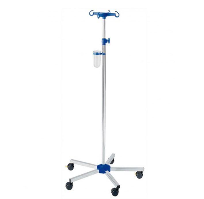 Der hochwertige aus Chrom bestehende höhenverstellbarer Infusionsständer hat ein 4fach-Kreuz zum Aufhängen von Infusionsflaschen. Der Fuss besteht aus einem 5 fach-Kreuz. Davon sind 2 Rollen mit Feststellern ausgerüstet. Ersatztropfglass finden Sie unter RF8705037.