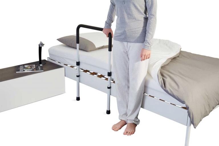 Die Bettaufrichtehilfe Steady ist eine ideale Lösung für alle, die Mühe beim Ein- und Aussteigen aus dem Bett haben. Zusätzlich verhindert sie auch ein Herausfallen aus dem Bett. Die Bettaufrichtehilfe bietet somit mehr Sicherheit im Schlafzimmer. Für mehr Komfort ist sie höhenverstellbar und die beiden Standfüsse mit Gummistopfen stehen sicher auf dem Boden. Die Bettaufrichtehilfe lässt sich problemlos zusammenbauen und kann bequem in Reichweite verstaut werden. Mindesthöhe Matratze: 36 cm, nicht geeignet für Betten mit Bettumbau.