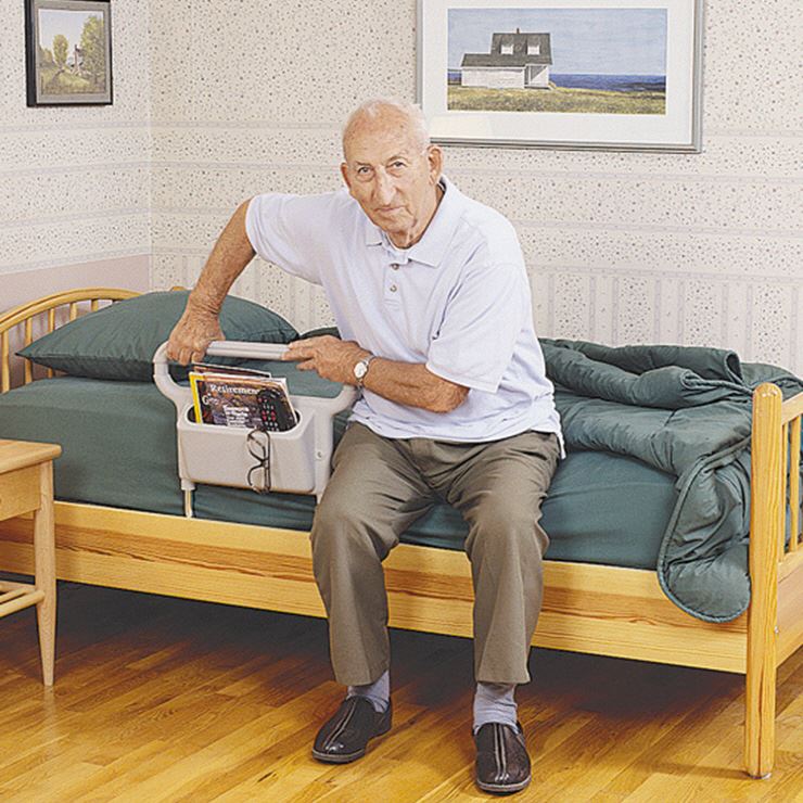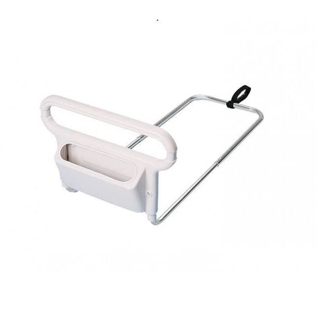 Mit dem Bettgeländer mit integriertem Ablagefach hat der Patient eine zusätzliche Staumöglichkeit von Zeitschriften usw. Auch beim Aus- oder Einsteigen aus bzw. in das Bett, ist das Bettgeländer eine Erleichterung und bietet Schutz vor dem Herausfallen. Angenehm zu greifen, ist der Kunst stoffgriff warm bei Berührung. Zur besseren Stabilität befindet sich an der Halterung ein Haken- und Schlaufenband, zur Befestigung am gegenüberliegenden Bettrahmen.