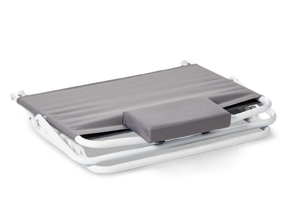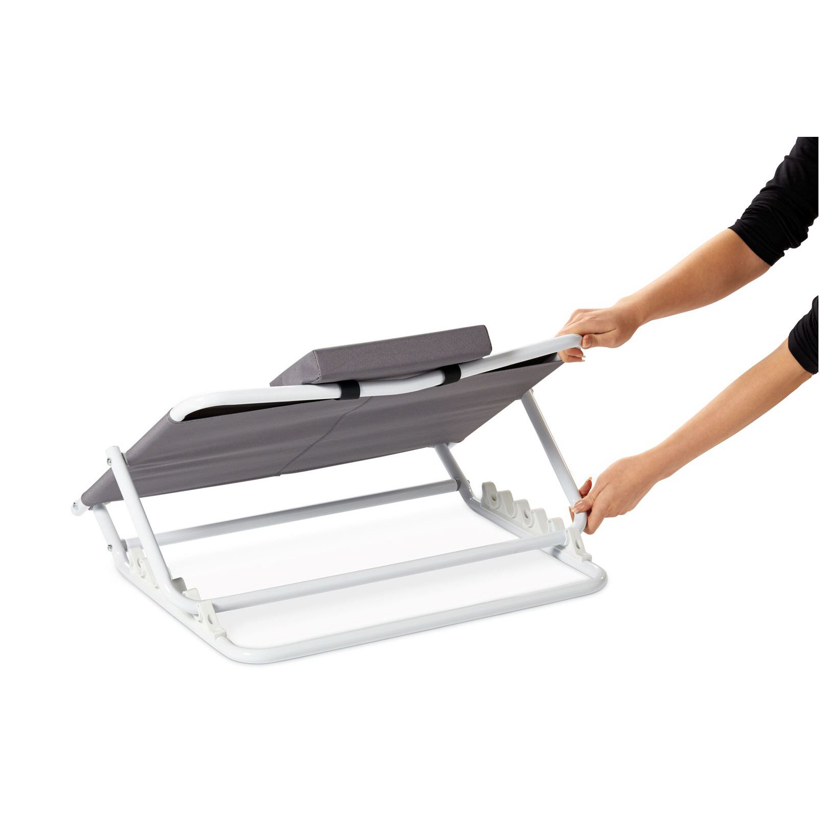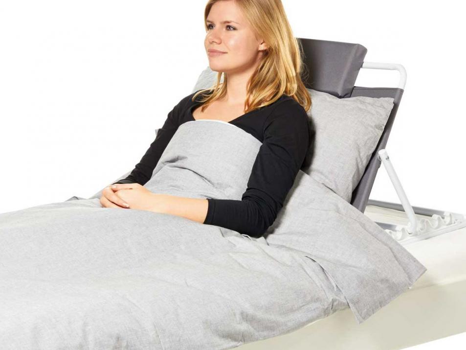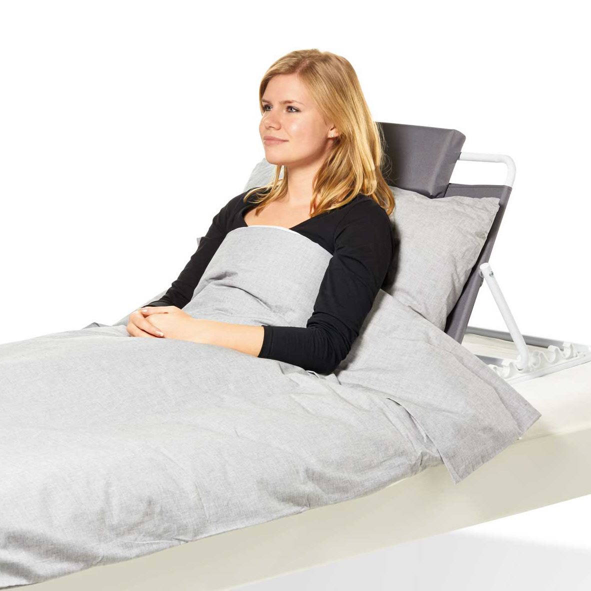Mit Hilfe der Rückenstütze kann der Benutzer aufrecht im Bett sitzen. Die Rückenstütze eignet sich für alle Betten und ist in fünf unterschiedliche Höhenstufen einstellbar. Die Rückenstütze kann flach zusammengelegt werden, das erleichtert den Transport sowie z.B die Aufbewahrung unter dem Bett.