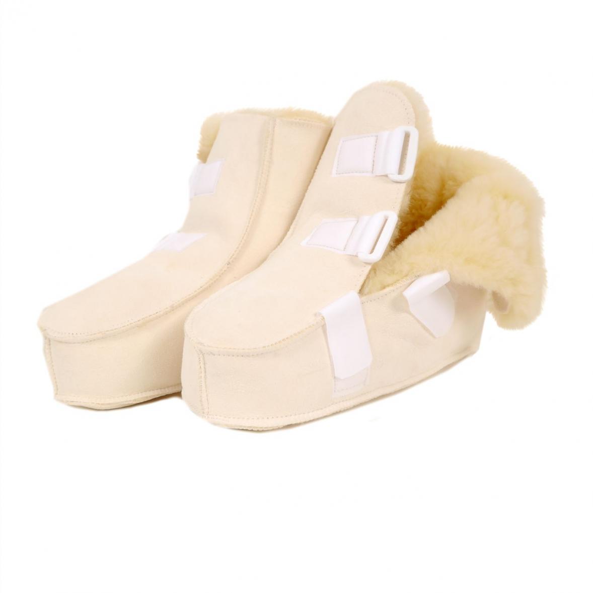 Fellschuhe mit Klettverschluss, Medizinfell für warmen Füsse unter dem Dach (Trockenbereich).