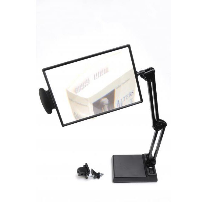 Diese Lupe ist in der Höhe und in jede beliebige Position verstellbar. Sie kann z.B. zum Lesen, Schreiben, Nähen, Sticken und vielem mehr eingesetzt werden. Der Fuß hat ein kleines Tablett, um Schreibutensilien oder kleinere Dinge hineinzulegen. Die Lupe misst 250 x 180 mm und wiegt 1,4 kg.