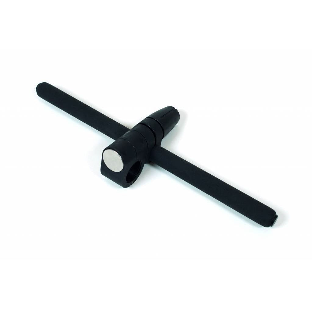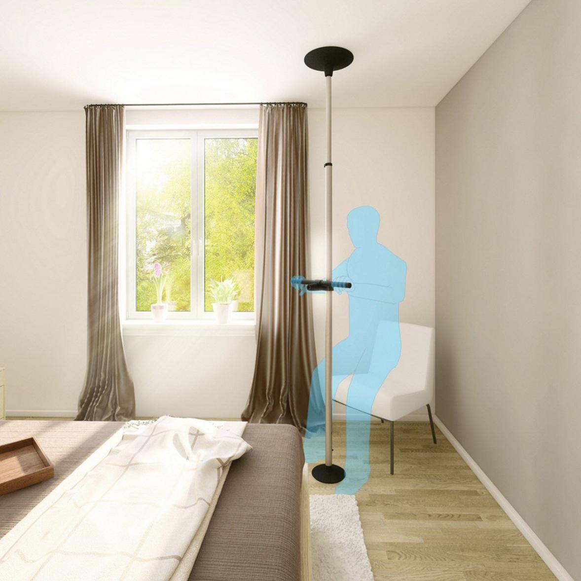 Befestigt man den Universalanschluss etwas lockerer, kann der Benutzer sich um die Stange bewegen.