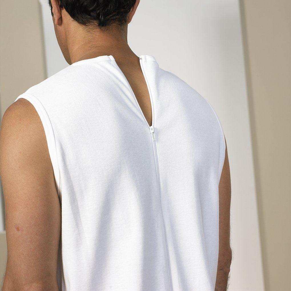 Body lang Bein mit Reissverschluss im Rücken. UNISEX für Damen & Herren gleichermaßen geeignet. Verhindert das unpassende selbst Entkleiden. Geeignet für Personen die sich zwanghaft selbst entkleiden und dabei sehr geschickt sind. Qualität 100% Baumwolle, 210 Gramm.